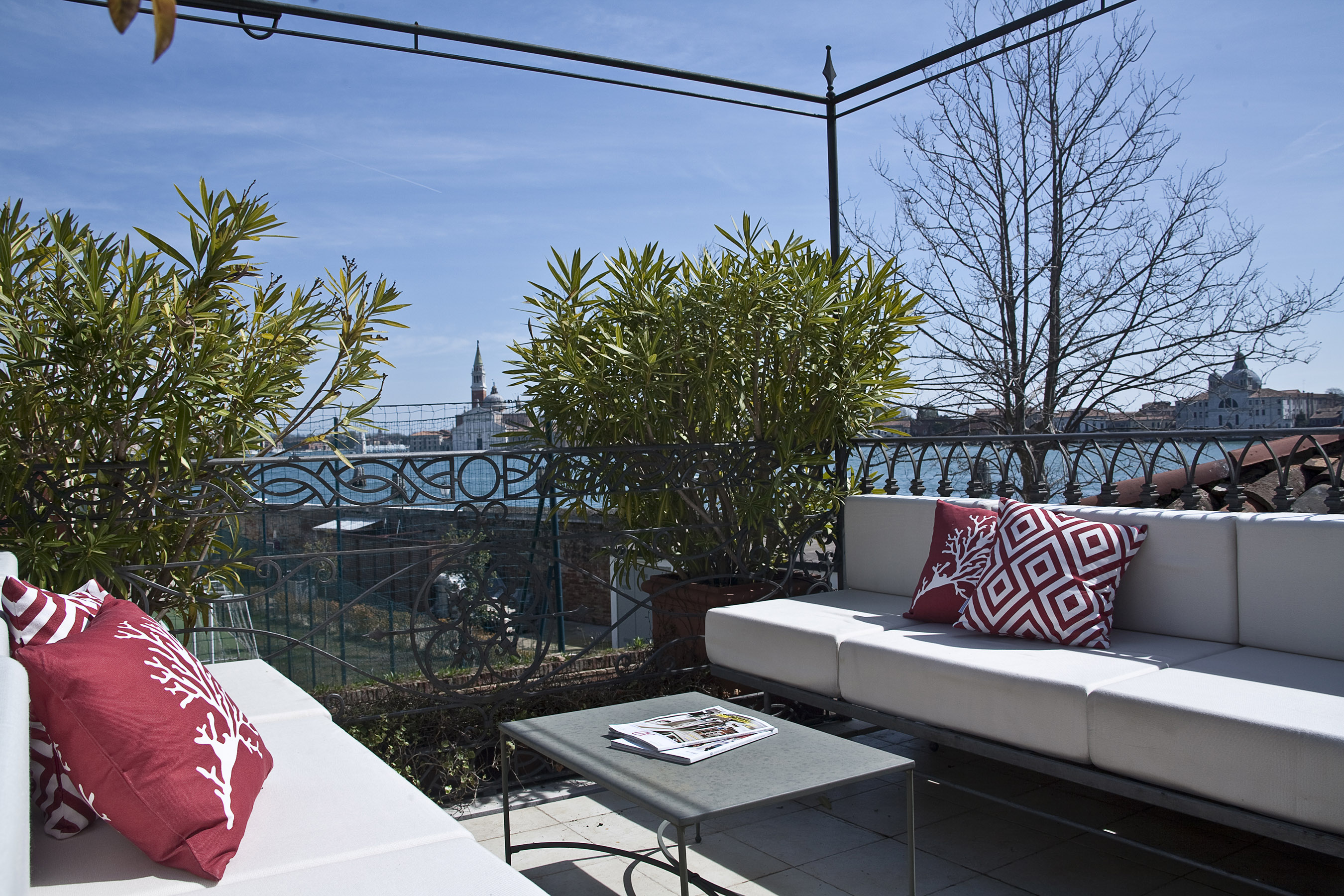 The bedroom and the main bathroom are located on the first floor, while a lovely 10 square meters terrace on the top floor offers you an amazing view of the Salute’s Church and the Giudecca Island up to San Giorgio Island.